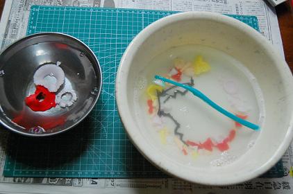 台所用中性洗剤とクレンザーを混ぜた水に、1日浸してから、歯ブラシで一つ一つ洗っていきました。