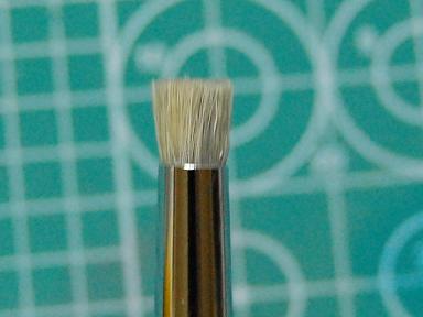 I の場合、「ドライブラシ用筆」を購入しましたが、使い古した筆をテキトーな長さに切って使う方が多いようです。その方が、経済的ですね~