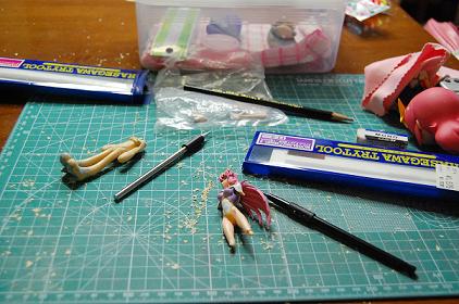 とりあえず、作りたい色のゲート部分をデザインカッターで削り、その削りカスをビンにためて、